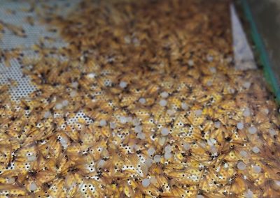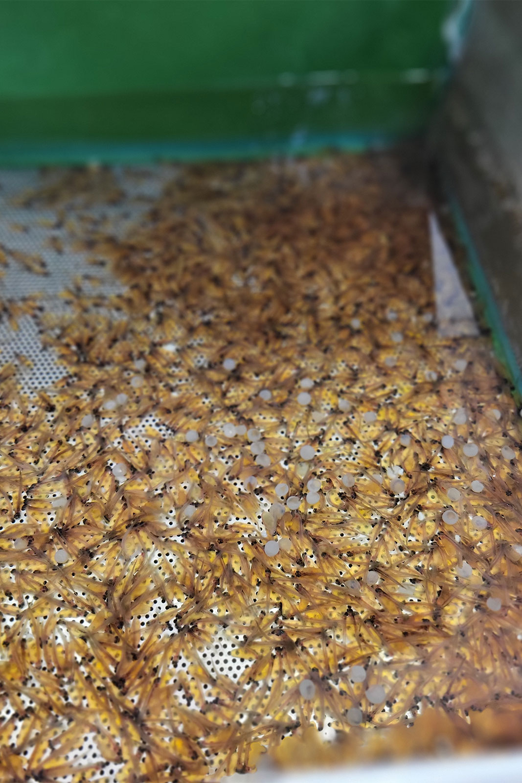Pomemben del projekta je tudi nadgradnja ribogojne infrastrukture. V letu 2025 smo v vališče uvedli optični sortirnik iker, ki predstavlja velik korak naprej v našem delu. Sortirnik omogoča hitrejši, predvsem pa natančnejši pregled iker. Neoplojene in poškodovane ikre se izločijo pravočasno, kar pomeni boljši izplen in manj izgub. Delo, ki je bilo nekoč dolgotrajno in ročno, je danes bistveno bolj učinkovito.