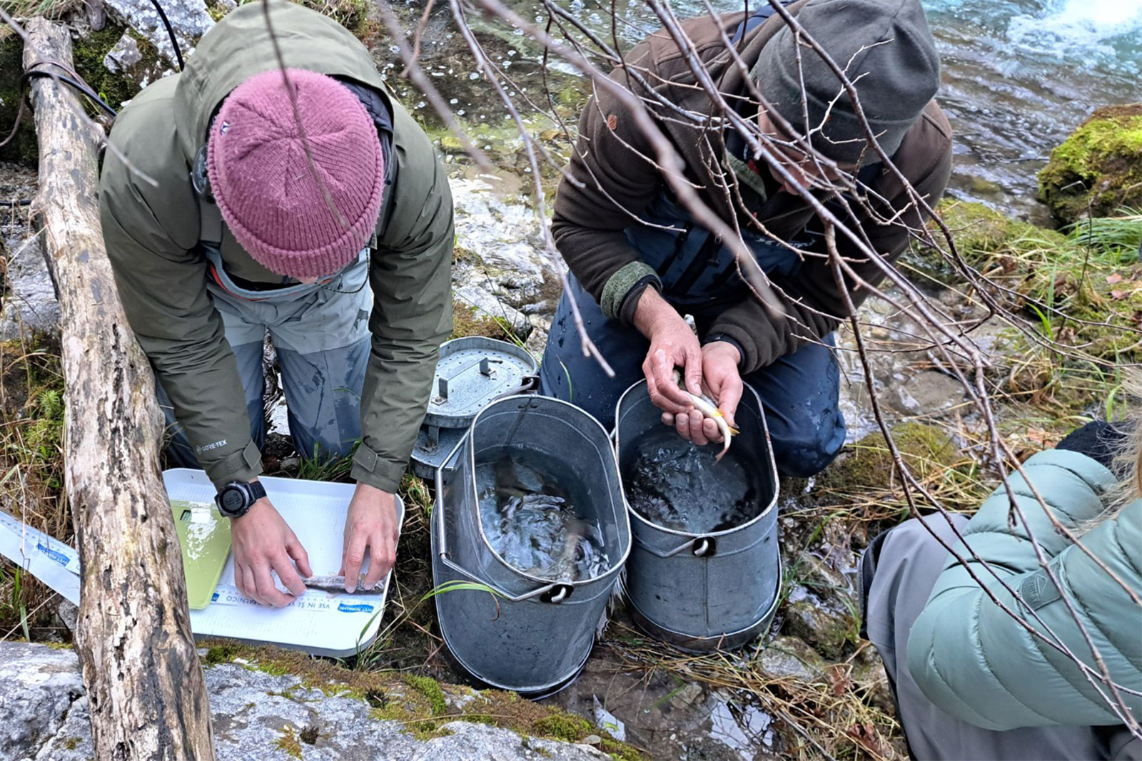 Prvi korak ni bil v ribogojnici, temveč na terenu. V različnih vremenskih in vodnih razmerah smo se podali na vodotoke Lipušček, Kokošnjak, Zadlaščico, Trebuščico, Sevnico ter reko Sočo. Posebej pomembni so bili odseki v naravnih rezervatih, kjer se pričakuje najbolj ohranjena genetska slika soške postrvi.